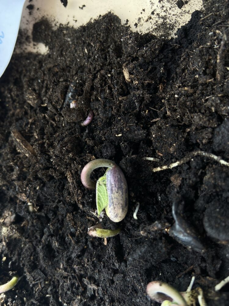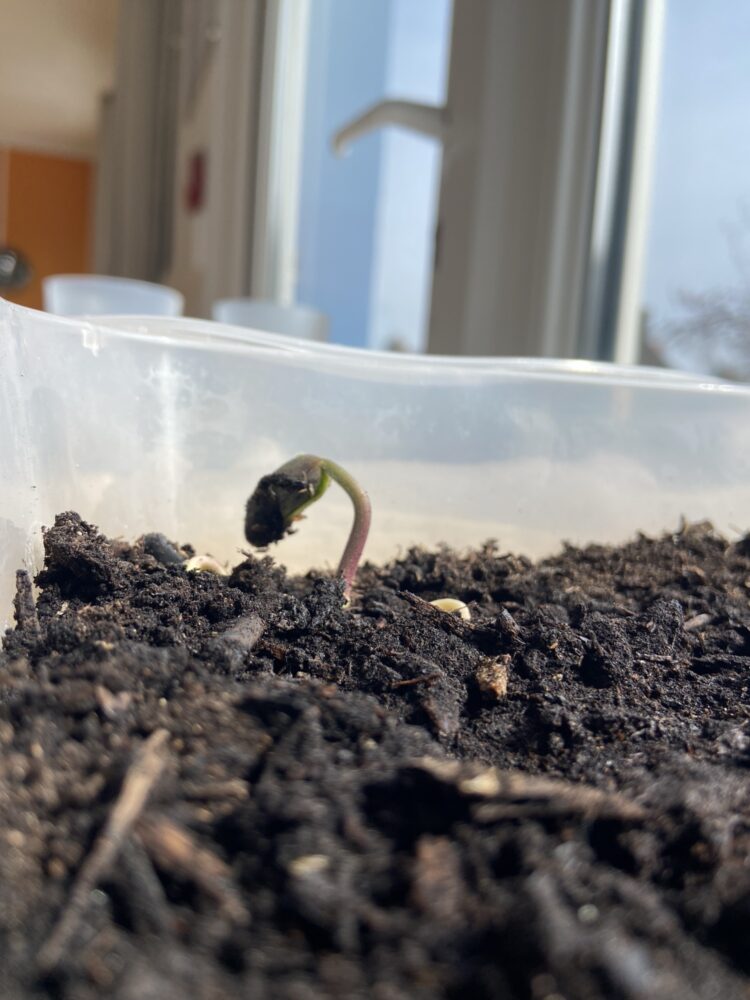 Après l’expérience de germination de nos graines de haricot, les CP-CE1 on pu conclure. La graine a besoin d’eau, de terre et de chaleur pour germer. Elle a même pousser sans lumière, mais elle n’est pas verte !