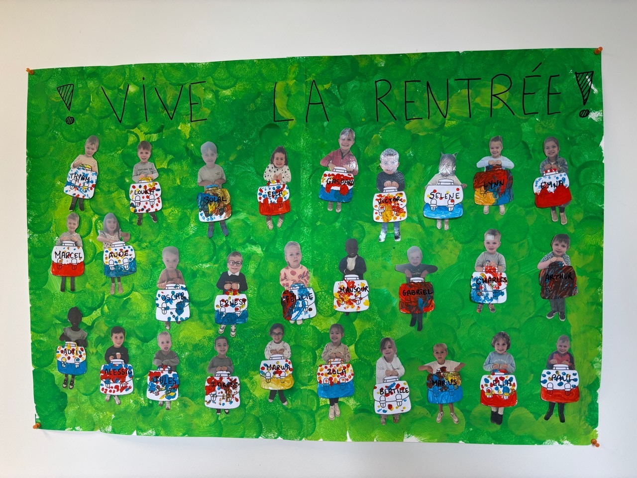 Art visuel En cette rentrée, les élèves se mettent déjà au travail ! Nous préparons notre fresque d’entrée « trombinoscope ».
