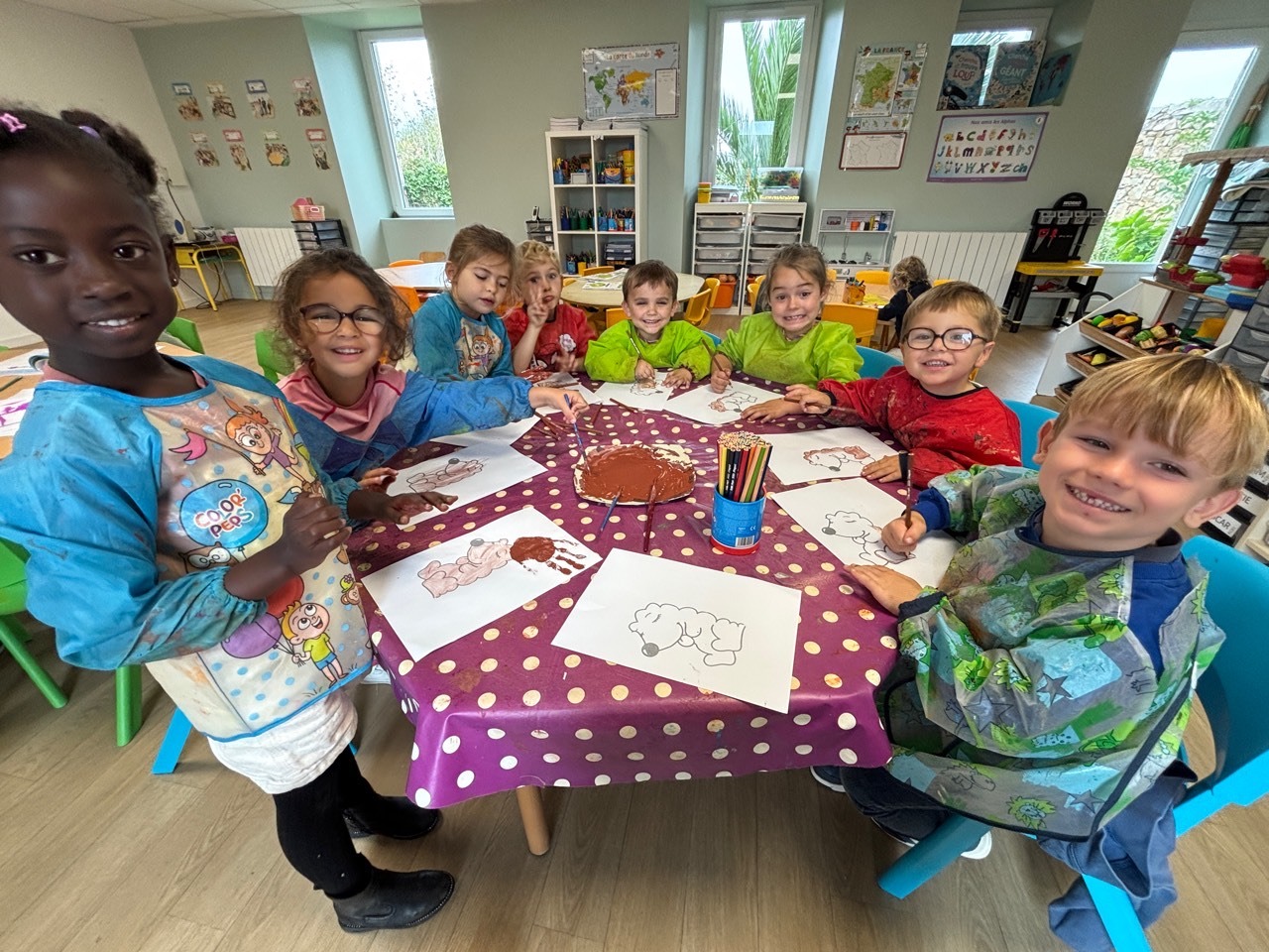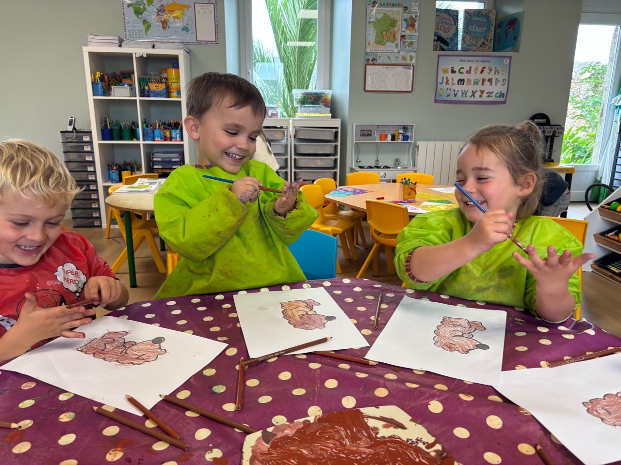 Atelier peinture de l’Automne pour travailler le toucher, en lien avec notre projet sur les 5 sens !