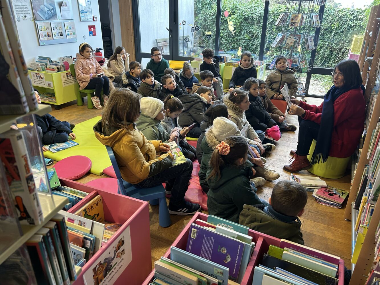 Lecture offerte Ce matin, nous nous sommes rendus à la bibliothèque pour la première fois de cette nouvelle année. C’est toujours un grand plaisir d’écouter les histoires de Janine !